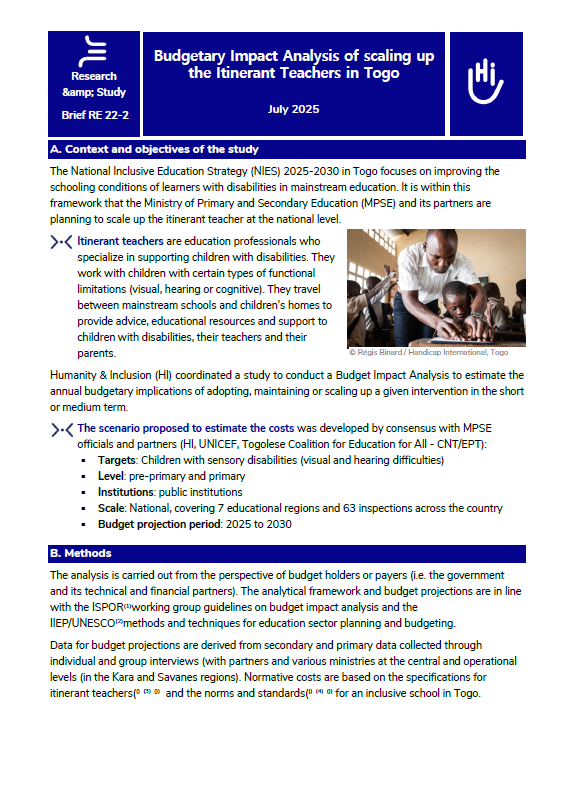 Budgetary Impact Analysis of scaling up the Itinerant Teachers in Togo: Brief Study